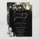 Este elegante verde botânico preto-e-branco verde-cordas florais luzes convite de festas da noite de casamento pode ser personalizado com suas informações em tipografia chica e sua foto no verso. Projetado por Thisnotme©
