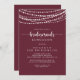 Esta corda ilumina as damas vermelhas o convite para chá de almoço é perfeito para um chá de casamento rústico. A design apresenta belas luzes de cordas pintadas manualmente em um fundo burlão.