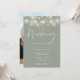 This elegant script sage green wedding invitation, featuring pretty string lights, can be personalized with your information in chic typography with your special photo on the reverse. Designed by Thisisnotme©