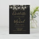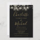 Com luzes bonito de cordas e nomes de estilo de assinatura, este elegante convite de casamento preto e dourado pode ser personalizado com todas as suas informações especiais sobre o dia do casamento na frente, seus detalhes do site do casamento e seu código QR no verso. Projetado por Thisnotme©