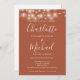 Com luzes bonito de cordas e nomes de estilo de assinatura, este elegante convite de casamento do terracotta pode ser personalizado com todas as suas informações especiais sobre o dia do casamento na frente, seus detalhes do site do casamento e seu código QR no verso. Projetado por Thisnotme©