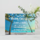 O convite de casamento para destino de praia tropical apresenta palmeiras e lanternas. Fácil de personalizar com seus próprios nomes e informações de casamento. Fotografia e design por T.K. Goforward, todos os direitos reservados. Certifique-se de verificar os itens correspondentes na minha Coleção de Casamentos de Luzes Tropicais de Praia e String na minha loja Zazzle:
