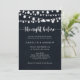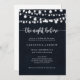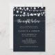Esta corda acende-se à noite antes de ensaiar o convite de janto é perfeito para um evento rústico. O design apresenta belas luzes de cordas pintadas manualmente em um fundo azul escuro.