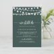 Esta corda fica verde, que ainda fazemos um convite de renovação é perfeito para uma cerimônia de renovação e celebração rustica de votos. A design apresenta belas luzes de cordas pintadas manualmente em um fundo verde.
