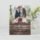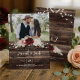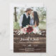 Permita que seus convidados sintam o charme rústico de seu casamento com este convite de casamento floral rosa e burro. O fundo apresenta um olhar de madeira de celeiro com luzes de cordas e um buquê de rosas e eucalipto, dando o charme do país de convite. Este doce e romântico convite é perfeito para um casamento russo ao ar livre e deixará seus entes queridos ansiosos para se juntar a você para seu dia especial.