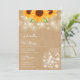 Um convite de casamento na moda rústico com flores de sol bonito, luzes de cordas e frascos-pedras. Os nomes dos casais felizes são colocados em um roteiro elegante acima dos detalhes especiais do casamento em um fundo kraft rústico. O reverso apresenta as iniciais do seu monograma num girassol correspondente. Projetado por Thisnotme©