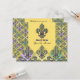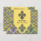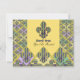 Uma faixa de ouro, verde e roxa "Fleur de lis" para Mardi Gras em roupa, t-shirts para homens, mulheres e crianças, bonés, sacos de brinquedo para miçangas e esteiras de Mardi Gras, gravatas, cartas, papéis de carta, convites, cartões de visitas, selos de correio, aglutinantes e presentes concebidos por medida que podem ser personalizados.