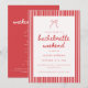 Striped Coquette Bow Bachelorette Weekend Details Invitation. A cute, modern and minimalistic red and white striped all-in-one bachelorette invitation. Add bride's name, dates, location and RSVP info on the front, and add your bachelorette weekend details and payment info on the back.