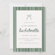Convites Striped Olive Green Coquette Bow Bachelorette