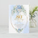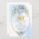 Celebrate a remarkable milestone with this 80th birthday invitation featuring one of today’s most trendy and elegant color combinations: blue and gold. Designed with soft watercolor blue hydrangeas, fresh eucalyptus greenery, and refined gold floral accents, this invitation brings a sense of calm sophistication and joyful celebration to an unforgettable occasion.
