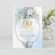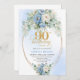 Convites Stylish Blue Peony Gold Frame 90th Birthday Invite