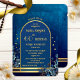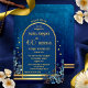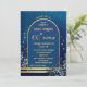A stylish adult birthday party invitation featuring a classic artistic blue design with flowers and golden accents. Beautiful for her birthday.
