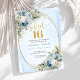 Perfect for elegant, modern, or garden-inspired parties, the harmonious mix of dusty blue, white florals, and greenery creates a timeless look that feels both youthful and upscale. The gold frame adds a subtle touch of glamour, making this design ideal for formal Sweet Sixteen events, evening celebrations, or classy birthday themes. The balanced layout ensures party details are easy to read while maintaining a polished, photo-worthy presentation.