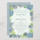 Linda aquarela suculenta pintada pela minha filha muito talentosa. Sombras verdes, fumaça e blues de aço criam o barqueiro neste belo convite de casamento.