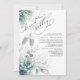 Folhas de prata suculentas de berçário verde e convites de chá de panela espumantes