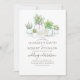 Este convite de casamento rústico contém jardins de mason bonitos com pequenas plantas sudoeste. Greenery inspirou design, perfeito para casamentos com temas de boho, campo ou quintal. A textura do velho celeiro é do lado de trás.