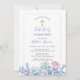 Celebre seu dia especial com este lindo convite de Primeira Comunhão. Este design apresenta lindas flores de Suculentas e uma cruz texturizada em dourado. Você pode personalizar todo o texto e a cor do fundo.