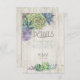 Fontes únicas, suculentas coloridas em aquarela e fundos de tábuas de madeira rústica são os destaques destes produtos de casamento para combinar. Este belo cartão de inserção de detalhes de casamento tem um modelo para editar as informações pertinentes para os convidados e as iniciais dos noivos e a data do casamento. Um fundo de madeira levemente envelhecida dá um apelo rústico. Procure ID515 para ver todos os produtos correspondentes neste conjunto.
