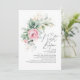Convites de jantar de ensaio com eucalipto aquarela, suculentas verde-sage e flores cor-de-rosa