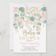 Tendências do Chá de fraldas de 2019 são a planta suculenta e o antracurum, este convite é perfeito para o tema Cores rosa-pessos e verdes