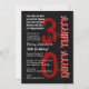 Este design moderno com um tema - sujo trinta - em preto, prata, vermelho e branco é uma forma elegante de convidar seus convidados para uma festa de aniversário de 30 anos. Todo texto é totalmente personalizável. Você pode alterar a cor do plano de fundo ou a cor do texto para uma aparência diferente.