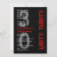 Este design moderno com um tema - sujo trinta - em preto, prata, vermelho e branco é uma forma elegante de convidar seus convidados para uma festa de aniversário de 30 anos. Todo texto é totalmente personalizável. Você pode alterar a cor do plano de fundo ou a cor do texto para uma aparência diferente. Este convite é apresentado num documento de reciclado. O excelente papel metálico encastrado com gelo daria aos seus convites um shimmer especial e brilho extra. Os itens de coordenação são mostrados abaixo.