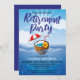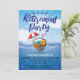 Convite de festas de aposentadoria moderno. Summer Beach Themed. Design de coco com guarda-chuva decorativa flutuando na água. Clique em personalizar para editar este modelo.