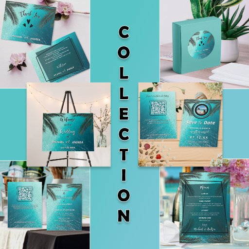 Convites Summer Blue Ocean Palm Trees Beach Casamento Códig