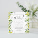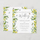 Este é um convite de casamento com tema botânico de limão-d-água. A design mostra um galho de um limoeiro de verão, suas flores brancas, folhas verdes e borboletas fluidificantes. Foi inspirado em limões italianos e no clima mediterrânico e serviria a qualquer casal que procurava um casamento de Verão moderno e elegante. Entre em contato com o designer para verificar se há variações neste design ou se há produtos correspondentes.