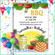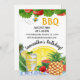 Este convite de aniversário de churrasco no quintal de verão apresenta um abacaxi suculento, melancia doce e morangos suculentos, junto com bebidas refrescantes para apagar sua sede.