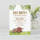 Sport baby shower theme, football baby shower theme, Summer baby shower theme, design feature watercolor American football and helmet on the glass field with typography 'Oh Boy! , A little all star is on the way" text in plam tree background. Perfect for your little slugger or your rookie baby theme, you can customize your own unique text and color.