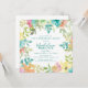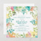Novo para o Verão de 2024. A cor da água floral de Verão moderna e colorida apresenta flores cor-de-rosa, azuis-turquesa, amarelas e laranja. Eles formam uma estrutura botânica, rústica e bófia em torno de seus detalhes de festa de aniversário. Este item faz parte da coleção de Flores de Aquarela de Verão. Contém modelos de convite, sinais de boas-vindas e decorações de festas.