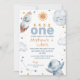 Sun First Trip Around Sun Twin Boys primeiro aniversario Convite Espaço exterior doce ou primeira viagem ao redor do sol primeiro convite de aniversário para um bebê gêmeo apresentando um pequeno sol, planeta, estrelas, nave espacial e homem espacial. A primeira viagem deste rapaz ao redor do convite solar tem uma foto nas costas e é ideal para um espaço temático gêmeos na primeira festa de aniversário.