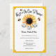 Convide seus jogadores Bunco favoritos para Buzz em sua casa para uma noite de jogo Bunco. Floral girassol amarelo com três espécimes do gênero Bombus spp. Tipografia de aquarela e de script. Três dados sortudos.