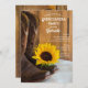 Convide convidados para uma festa casual de celeiro honrando a aniversária da vaquinha com o Convite de festas Quintor de Girassol e Cowboy Boots Country Western Quinceanera. Personalize-o com os detalhes específicos da sua doce celebração 15. Este convite para o evento, tema popular de rústica fazenda quic, apresenta uma fotografia em estilo fazenda de um par de botas de cowboy de couro marrom e flor de girassol amarela com fundo de madeira de celeiro. Inpo perfeito ou ideia para um evento informal de um celeiro. Disponível como um convite impresso para envio por correio ou como um download digital para fácil compartilhamento digital online.
