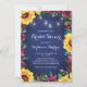 Estes convites de chá de panela apresentam um design de borda floral de aquarela com girassóis, rosas de burlagem e folhagem em um fundo de quadro azul marinho com luzes de cordas de jarro mason. Personalize-os com o seu próprio texto. Estes convites fazem parte de uma coleção que inclui artigos de papelaria de casamento correspondentes. Visite nossa loja para ver o cheio de itens que você pode personalizar para o seu casamento.