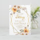 Dísias Girassóis Querem Um Convite De Casamento De Frame Dourado Floral. Elegante convite de casamento rústico com flores girassosas pintadas manualmente em amarelo-ouro, margaridas brancas, folhas de outono e moldura de folha de ouro com texto dourado. Um convite de casamento floral sazonal neutro perfeito para o final do verão e casamentos outono. Contacte-me para obter itens e/ou personalização correspondentes.