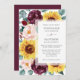 Estes elegantes convites para o casamento apresentam um design floral de aquarela moderno com girassóis, rosas de burgundy e blush com folhagem de folha de eucalipto. Personalize com seu texto. Os produtos de suíte de casamento também estão disponíveis.