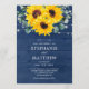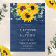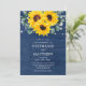 Estes convites de casamento rústicos de aquarela apresentam um design de girassol de aquarela com folhas de eucalipto e luzes de cordas em um fundo de madeira azul marinho. Personalize-os com o seu texto. Produtos correspondentes disponíveis.