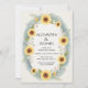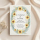 This elegant watercolor design features a soft blue oval wreath adorned with hand-painted sunflowers, delicate greenery, and pastel florals. The warm yellow blooms create a romantic rustic feel inspired by countryside weddings and late-summer celebrations. With graceful typography and a balanced floral composition, this design is perfect for couples seeking a timeless, nature-inspired wedding aesthetic that feels both charming and refined.