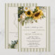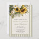 This sunflower wedding invitation suite blends rustic charm with refined elegance, creating the perfect first impression for a romantic countryside or garden celebration. Featuring a lush arrangement of golden sunflowers, delicate white florals, and soft greenery, this floral wedding invitation captures the warmth and joy of a summer or fall wedding. The natural botanical design paired with a muted sage green striped border and soft ivory background gives this invitation a timeless yet modern aesthetic that feels both inviting and elevated. The warm earthy color palette and organic floral details make this invitation ideal for sunflower weddings, rustic chic themes, barn weddings, vineyard celebrations, and elegant outdoor ceremonies.