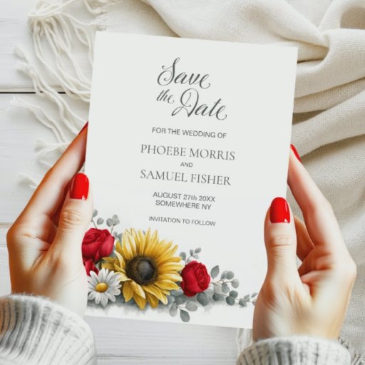 Convites Sunflower Red Rose Floral Wedding After Party