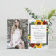 Design apresenta girassóis, rosas e flores silvestres elegantes com uma paleta de cores amarelo ouro, vermelho e cinza. Design também apresenta uma estrutura de cinza de carvão contra um fundo de madeira rústica. Modelo de foto via Pixabay licenciado sob CC0 e deve ser substituído por sua própria foto