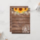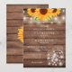Bonito girassóis, luzes de cordas e jarros de pedras decoram seus detalhes especiais de celebração de casamento, dispostos em elegante tipografia de ouro em um fundo de madeira rústica. O reverso apresenta as iniciais do seu monograma num girassol correspondente. Projetado por Thisnotme©