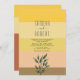Convite de casamento botânico, simples, mínimo, do nascer do sol, amarelo-do-sol e terracotta, combinado com escala de cores moderna com verde, monograma de volta e roteiro de caligrafia moderno.