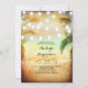Absolutamente romântico, elegante e chá de panela de praia único com um fio de luz pendurado nas palmeiras. O chá de panela tropical e moderno da praia convida com um colorido pôr do sol colorido. Perfeito para chá de panela da ilha de destino também.
