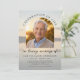 Beautiful sunset memorial photo card features easy personalization options for your loved one's picture in a modern arch frame, as well as name, date of birth/death, and celebration of life memorial details on a soft golden sunset background.