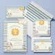 Celebrate your little one's special day with this adorable 'Our Little Sunshine' first birthday invitation! Featuring a cheerful watercolor sun and a sweet bunny, this design brings a touch of whimsical charm to your celebration. The soft blue and cream striped background creates a warm and inviting atmosphere, perfect for a baby boy or girl's milestone birthday party. Easily add your event details to invite your loved ones to join the fun as your little sunshine turns ONE!