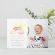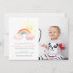 Este lindo "raio de sol" 1rua / primeiro convite de aniversário da menina apresenta um fundo branco com sua foto e o arco-íris e o sol sorridente e colorido d'água. O verso apresenta um fundo branco com listras coloridas do arco-íris de cor aquosa. Personalize para suas necessidades. Você pode encontrar mais produtos correspondentes na minha loja.