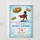Unleash the hero within with this exciting birthday invitation! Our comic book inspired design features a heroic silhouette against a star filled sky, complete with "POW!" and "WOW!" exclamations. Perfect for a young boy's birthday celebration. Personalize the event details for a memorable and super fun gathering that your little hero and his friends will love.